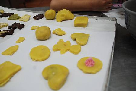 見學館提供材料、道具和場地,我們只要人到就好,可以做蛋糕、小西點或是藍莓酥,選擇蛋糕的話,就是把鮮奶油擠到已經烤好的蛋糕體上,小西點是要用模型將麵團壓出各種形狀,藍莓酥則是要把藍莓餡料包到麵團裡,這些動作都不難,主要是要讓小朋友體會自己動手做的樂趣。