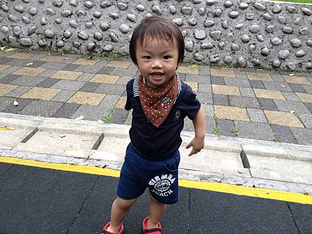 因為我們家住十二樓,停車場在地下一樓,每天早上搭電梯總會遇到其他樓層的住戶,他會在人家進電梯的就開始預演,自顧自的嘀嘀咕咕唸著「掰…掰…。」,然後在開門的那一瞬間,像是爆發一樣,正式且大聲地說:「掰掰!!」,好像跟每一戶人家都很熟一樣,我覺得他以後應該很適合當「社區小巢」。