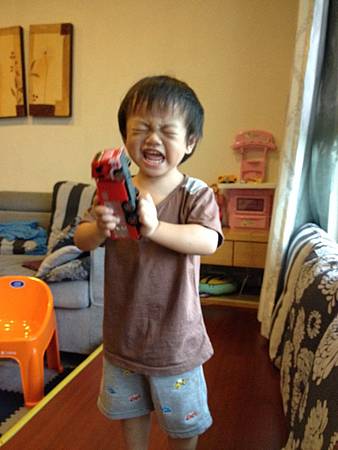 後來我到網路上google,相關文章是說,因為這個年紀的孩子,還沒辦法充分用語言表達自己的喜怒哀樂,導致他在情緒激動的時候,都會用一些亢進的手段來表示,例如咬人、打人、踢人,這些動作並不代表他在生氣,有的時候太高興也會用同樣的表達方法。