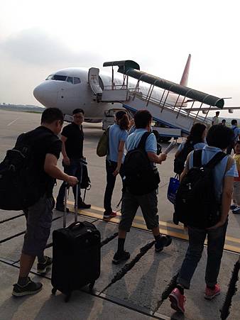 國內航班登機方式很特別,不是利用空橋,而是用巴士把旅客載到飛機旁邊登機,