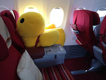 我排到的坐位跟頭等艙只有一牆之隔,連黃色小鴨都能坐頭等艙了(哪來的?),我卻只能坐經濟艙。
