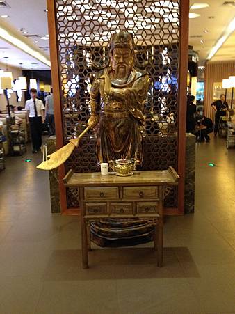 在台灣我沒看過,這一間也是當地最有名的,門口還有一尊關公像。