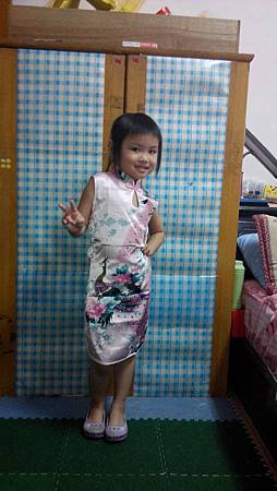 記得兩年前去蘇州出差的時候,幫琁和小金魚買了兩件旗袍,她們一直都沒穿,前幾天老媽整理東西的時候翻出來給羽琁換上,羽琁超愛。
