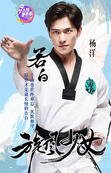 最近中國有一齣青春校園小清新連續劇,叫做「旋風少女」,講的是元武道(就是跆拳道)的故事,故事裡面的女主角戚百草是一個很平凡的女生(就是很蠢又沒腦意思),卻因為認真的態度吸引了劇裡面男一、男二和男生的心,很拔剌的劇情。