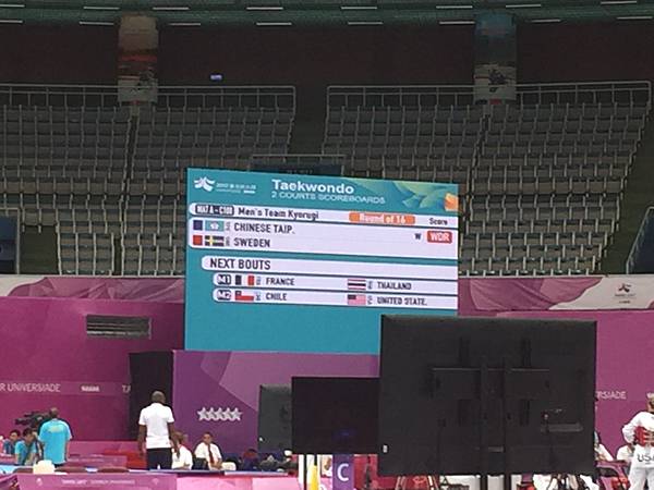跆拳道比賽是由韓國發源的,也感受的到韓國一直想把跆拳道推廣出去,所以不斷的改變比賽規則,改變比賽的方式,想讓跆拳道這項競技變得更刺激、更好看,今年世大運的品勢項目是由跆拳道的「太極章型」所演變而來的,講求的是選手動作的精神、頓點與力道,而自由品勢更是加入了音樂及自由動作,讓跆拳變得像是另一種版本的韻律體操,更增加了可看性。而團體對打部分則改成可以隨時由教練自由換人,有點像電玩遊戲格鬥天王一樣,這個選手累了趕快換下一個,或是這個對戰組合沒優勢我也趕快調整,讓比賽變得更刺激。