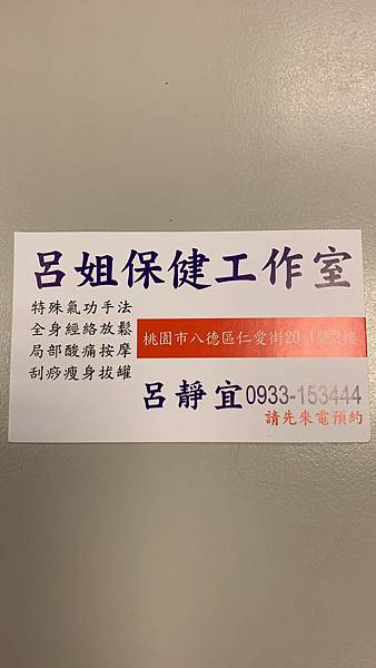 當天朋友介紹了一位自行開業中醫物理治療師呂姐,說讓她就知道身體哪邊不好,雖然名字有點像做什麼攝護腺保養之類的,但還是抱著半信半疑的態度跟她約了時間。