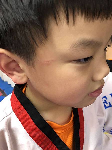 這個月我升級到了紅黑頭,又離目標的黑帶更進一步,女兒也很爭氣,動作越踢越漂亮,態度很認真,自己本身也有興趣,所以進步就很快;兒子呢就有一搭沒一搭,大部分的時候都沒專心上課,以至於在練習的時候頭被我踢中了一腳…。