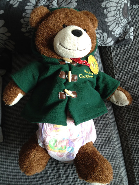 等她看完電視跑走的時候,我發現那隻熊一個人很無言的坐在沙發上。