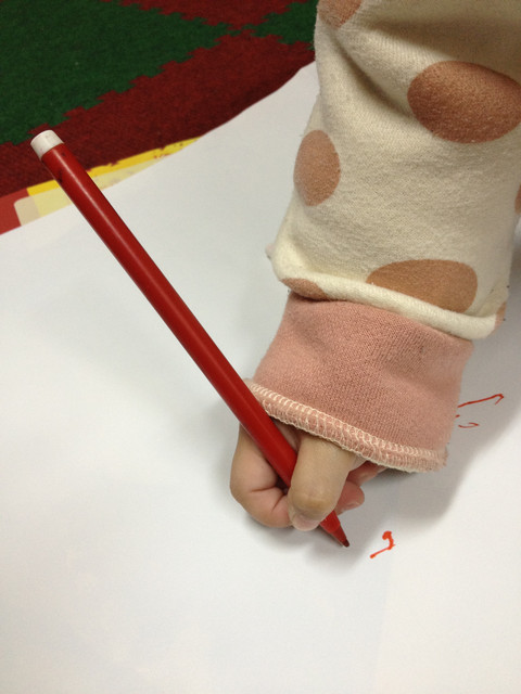 另外,我發現琁琁的握筆姿勢超標準,除了握的地方稍微低了一點之外,不論是拇指與食指的角度,亦或是該彎曲的關節,她都把握到拿筆的要領,甚至拿的比很多大人都還漂亮。